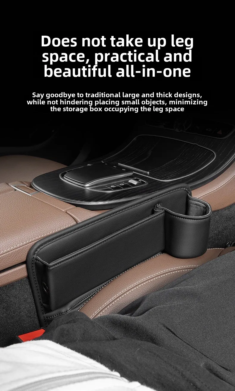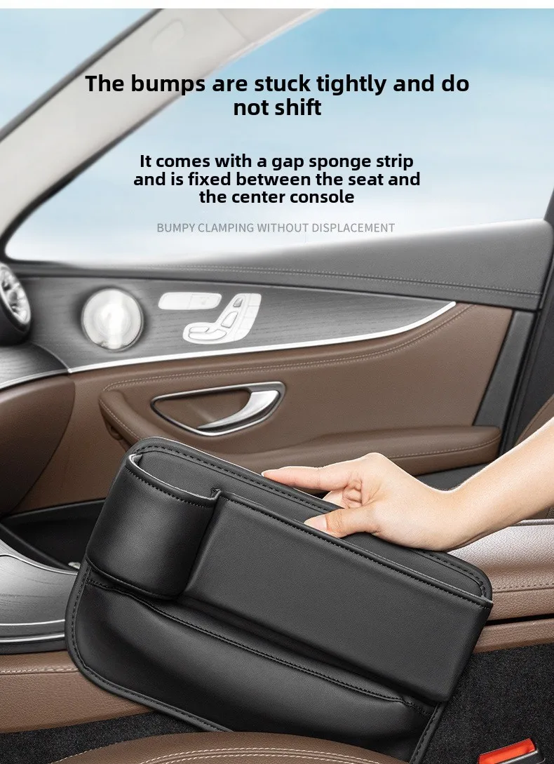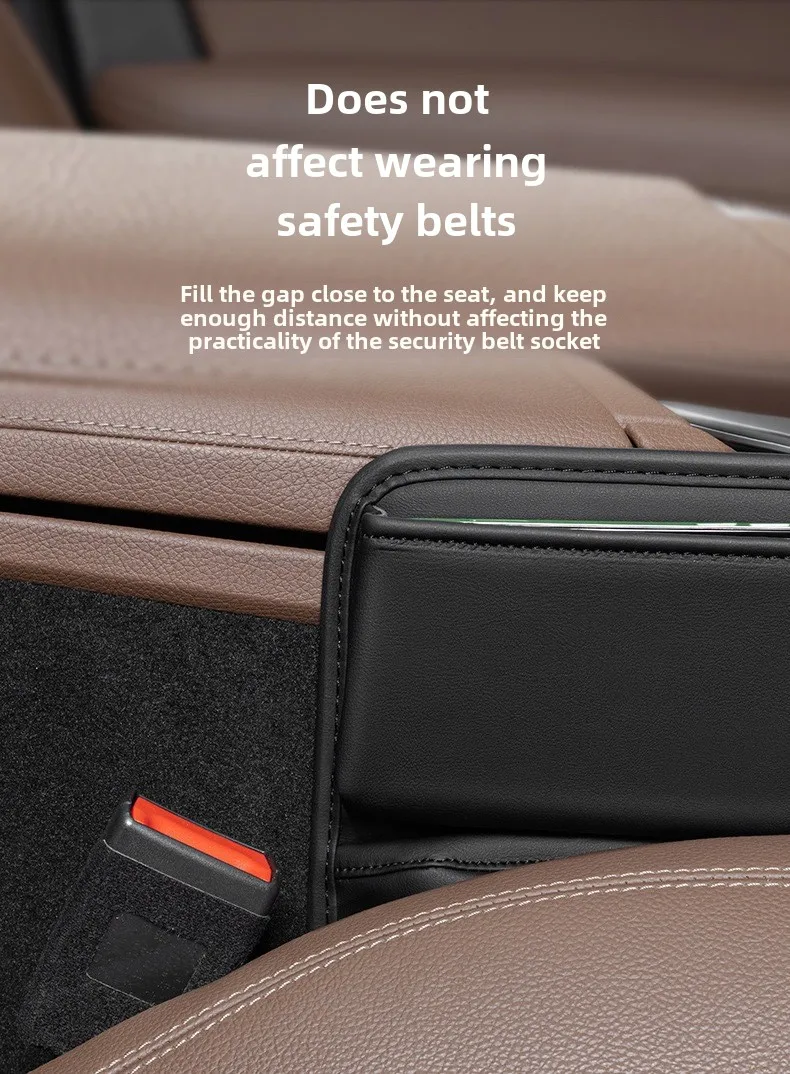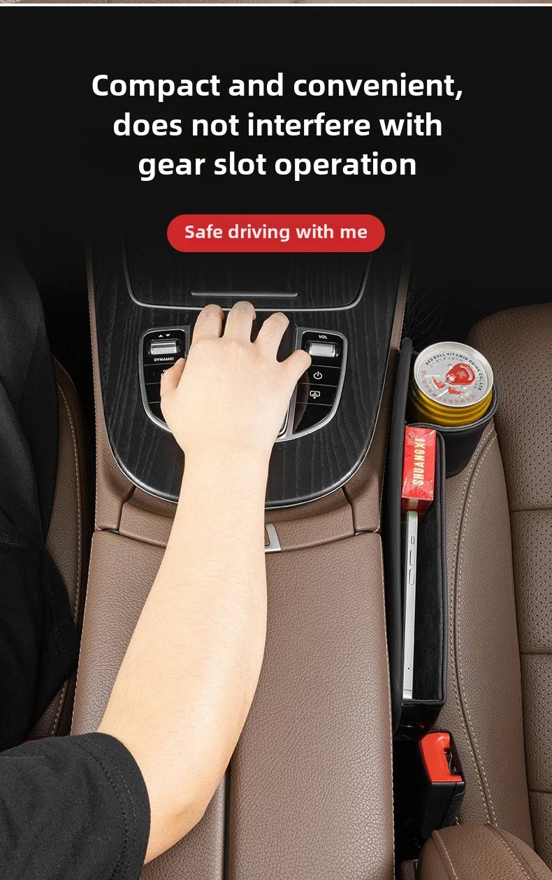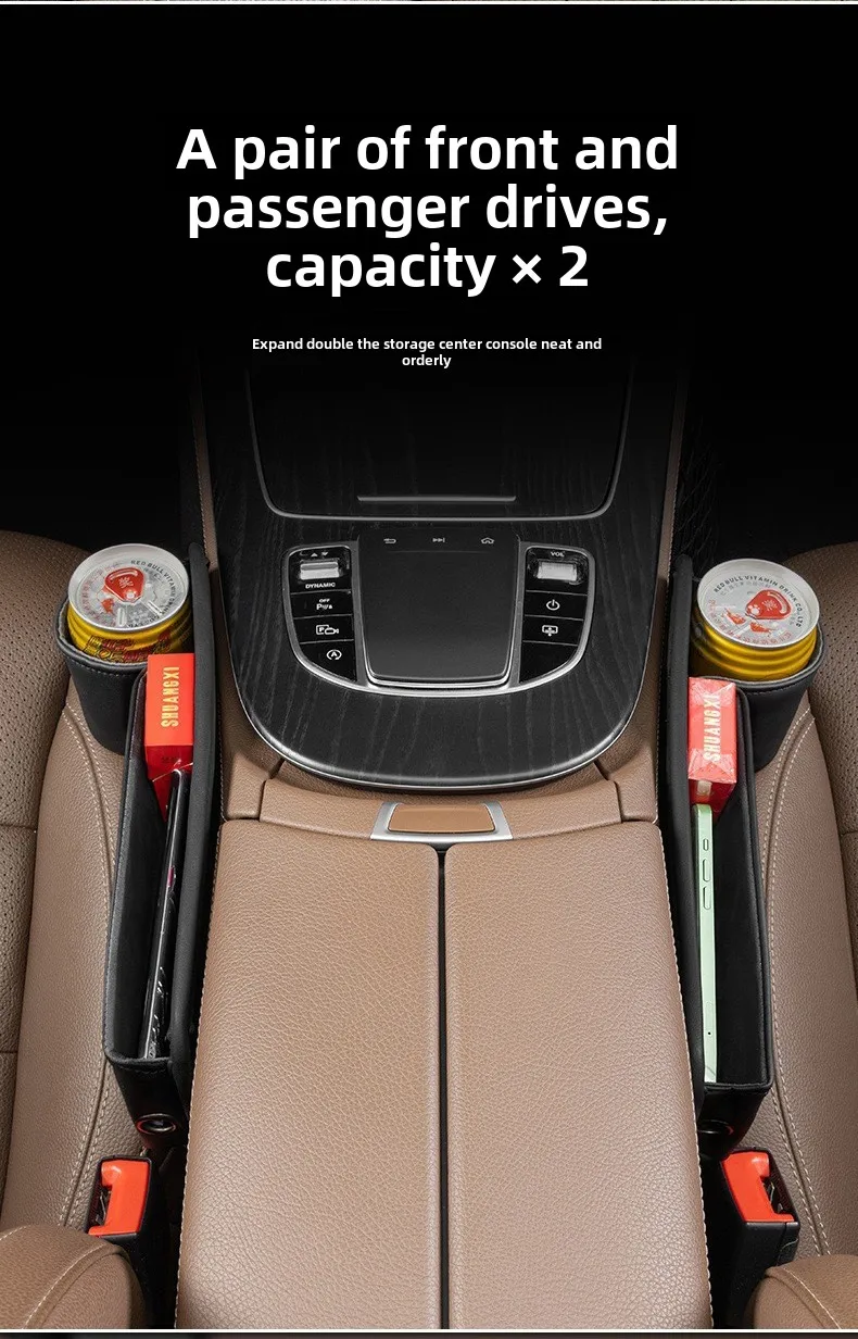 * 2-IN-1 FUNCTION. Car seat gap storage box + leak-proof plug.