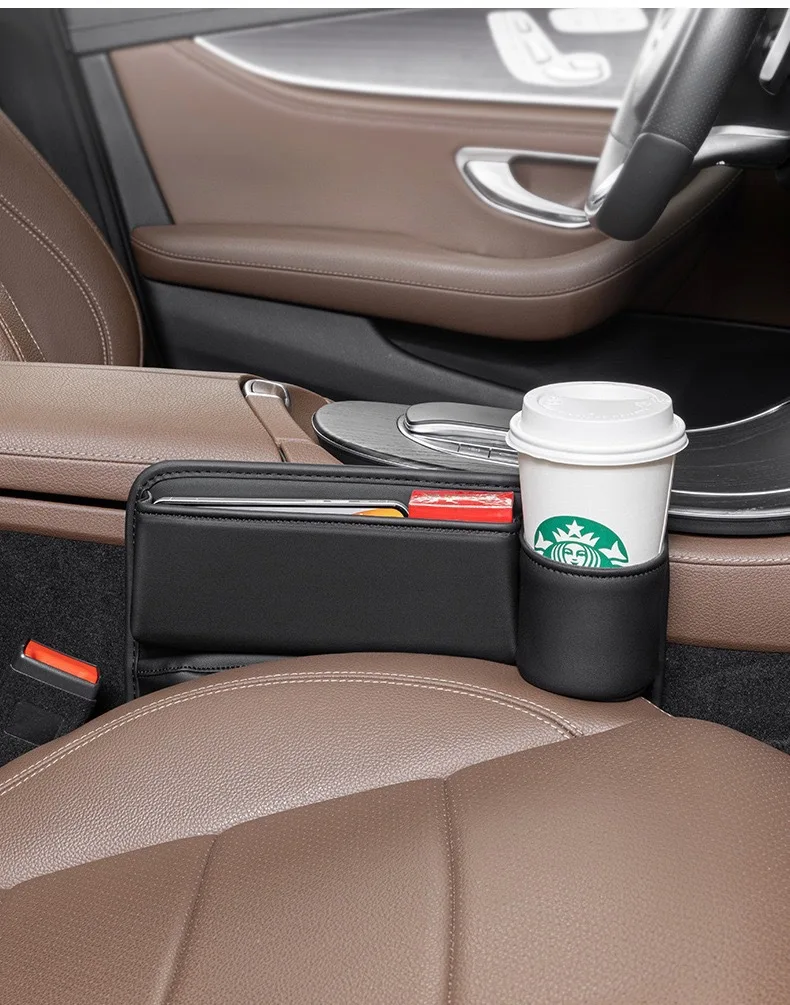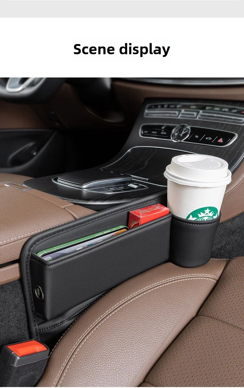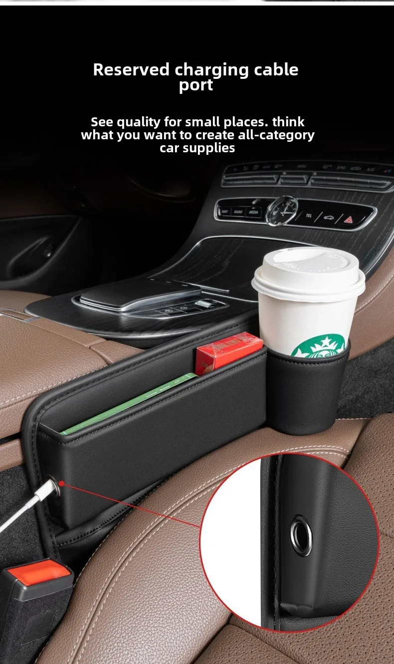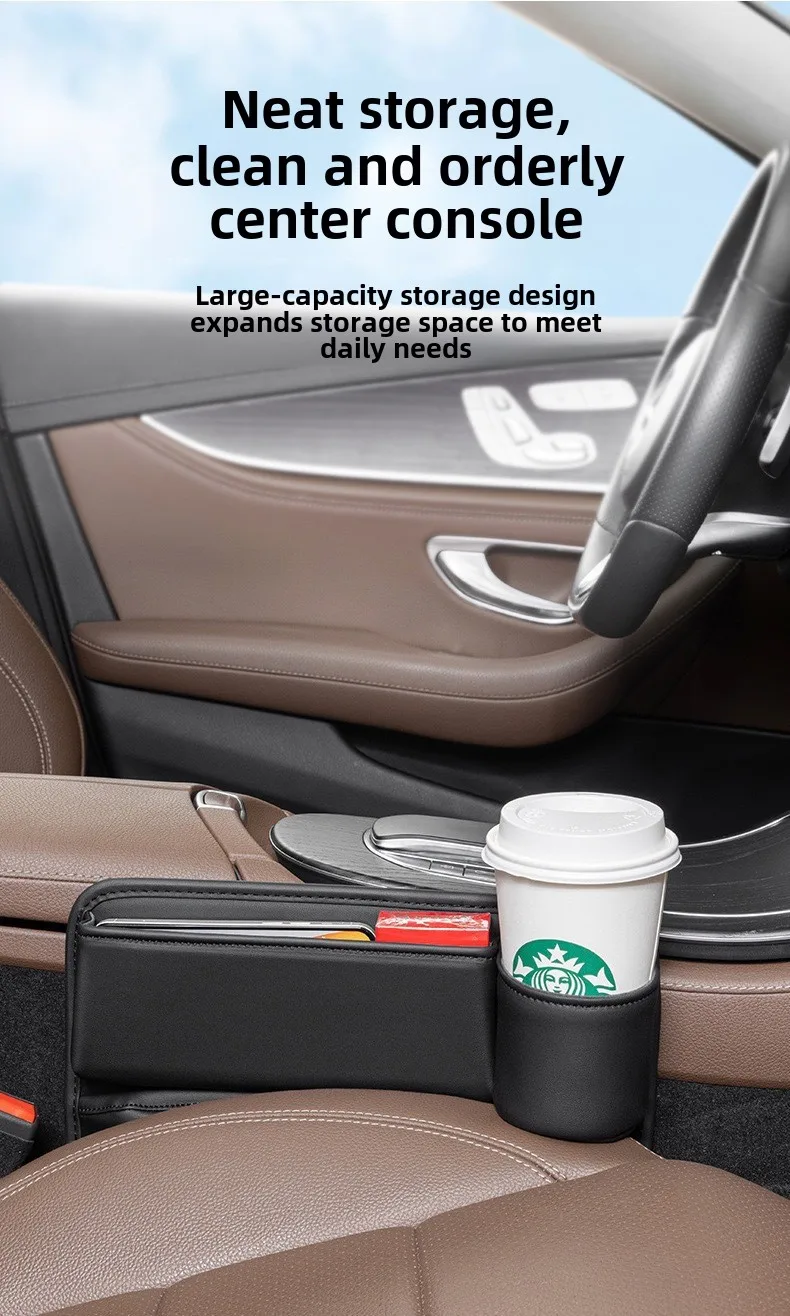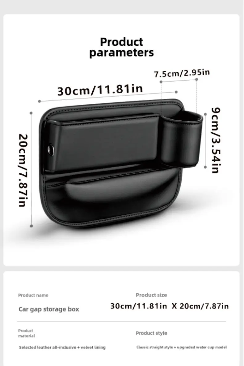 * 2-IN-1 FUNCTION. Car seat gap storage box + leak-proof plug.